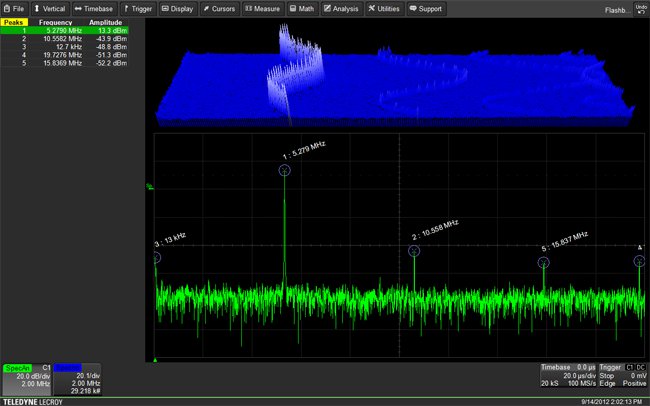 通过一个频谱分析仪的界面在频域查看信号细节。