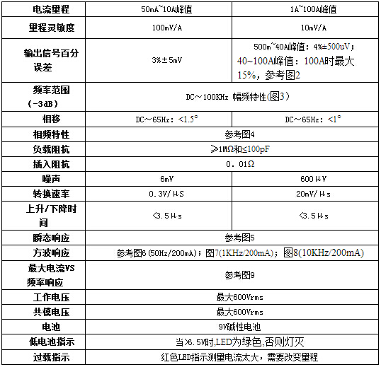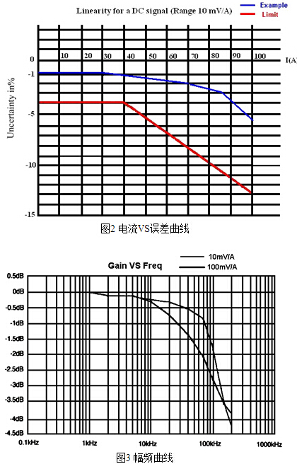 测量条件:23℃±5℃,20~75%RH,正弦频率48~65Hz,外磁场<40A/m,附近无载流线,被测导线穿过中心测试,负载阻抗1MΩ。