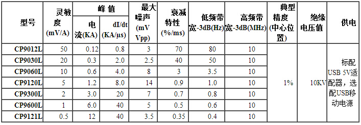 CP9000L系列探头环外径典型值8mm,耐压值高达10KVpk,非常适合大电流,大功率场合。